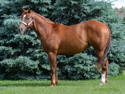 This is a classy, good-looking granddaughter of Frenchmans Guy, Zipanic and our great producer Petunia; she'll have speed and agility to spare. Do not overlook this pretty, athletic mare.